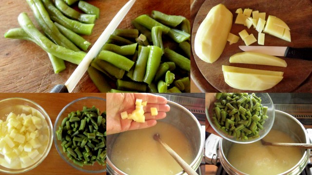 Add the diced potato and after three or four minutes add also the chopped green beans.